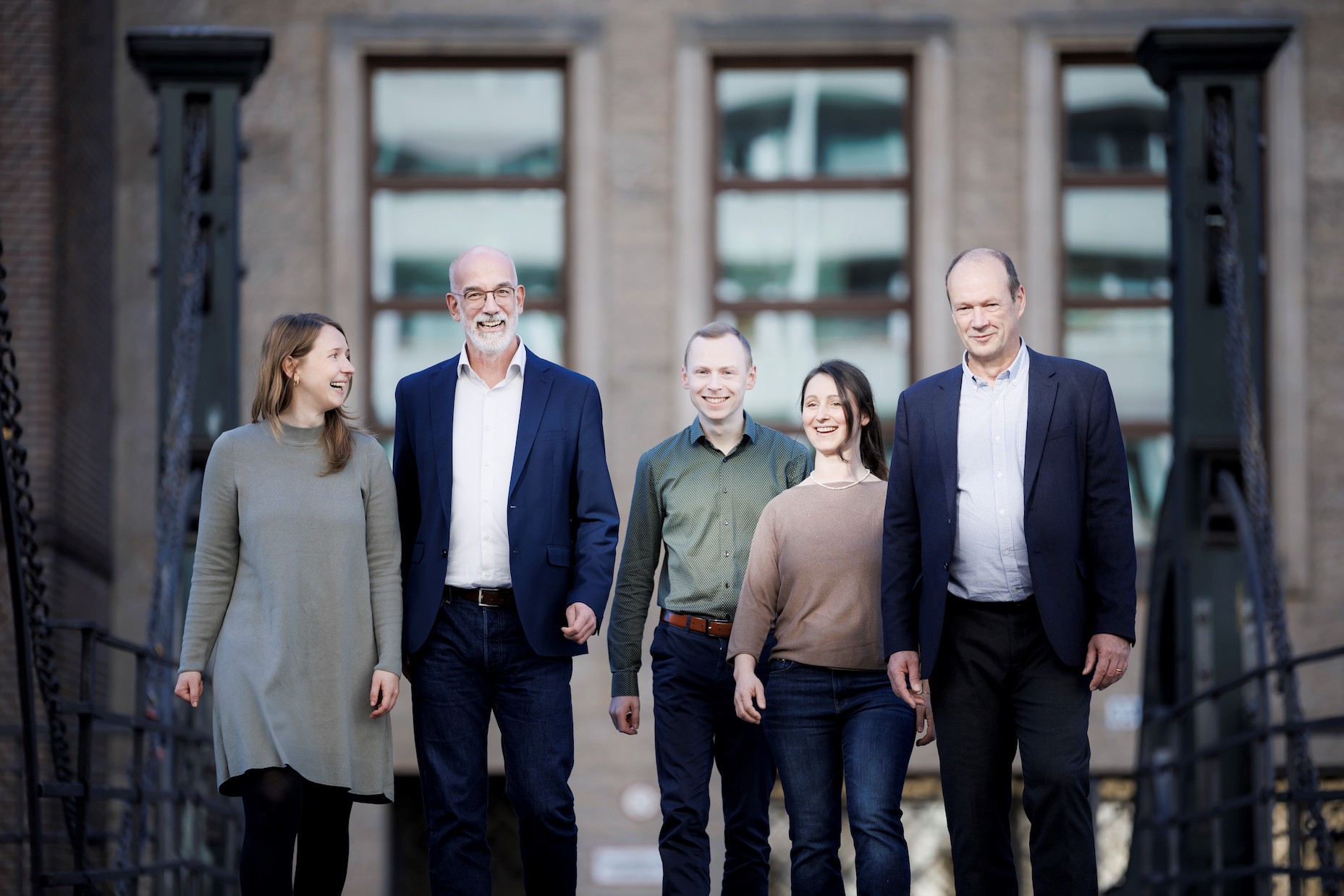 Projekt-Team v.r.n.l.: Prof. Andreas Rietbrock (wissenschaftliche Co-Leitung), Dr. Katharina von Sturm (Projektkoordination), Johannes Wünsche (Kommunikation), Prof. Christian Stegmann (wissenschaftliche Co-Leitung), Sarah Stötzner (Leitung Kommunikation)